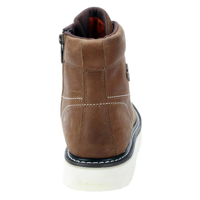 Classic wedge design gets an edgy wake-up call in the 6″ Beau. Durable leather uppers feature traditional moc toes, rugged metal hardware and locking YKK side zippers. Shock absorbing rubber wedge outsoles reduce the force of impact, keeping knees and feet from feeling fatigued.