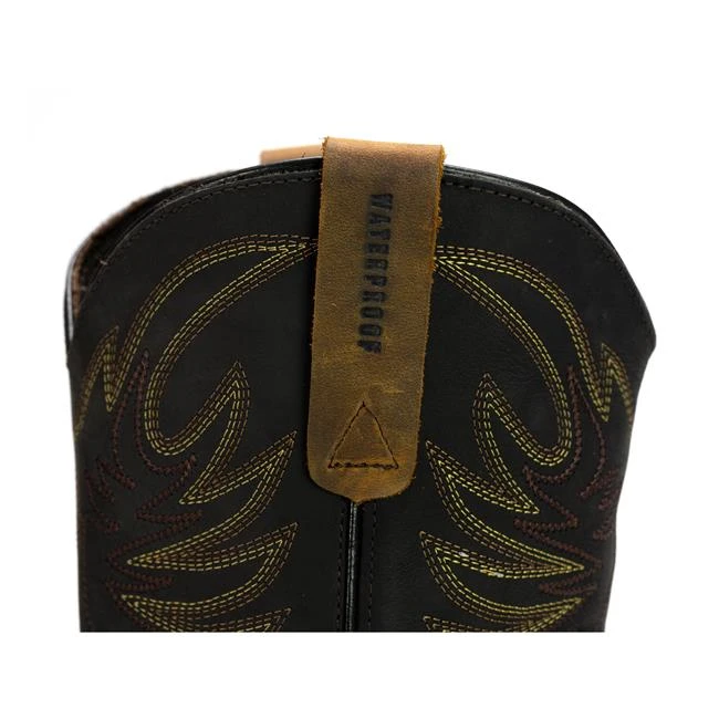 There’s no reason why a great pair of work boots can’t also be a great looking pair of everyday boots. Thorogood American Heritage 11″ black and Trail Crazyhorse safety toe waterproof Wellington work boots give you the best of both worlds. You’ll have the protection you need with full-grain leather materials, an 11-inch shaft, steel safety toe, and waterproof construction – plus a slip-resisting and oil-resisting Wyatt90 outsole. Inside, our Ultimate Shock Absorption footbed on Poron comfort cushion insole gives you the added comfort to keep you on your feet all day long. But the outside – that’s where you’ll really see a difference. These pull-on Wellington work boots are made to look as good as they perform, with a Trail Crazyhorse bottom and black upper with three-tone decorative shaft stitching. You can roll right from the job site to an evening on the town without missing a step.